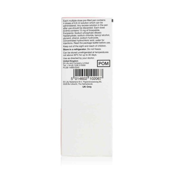 Hipersensibilidade à tirzepatida ou a qualquer um dos excipientes. História pessoal ou familiar de carcinoma medular de tireoide ou neoplasia endócrina múltipla tipo 2. Conservar no frigorífico entre 2°C e 8°C. Não congelar.